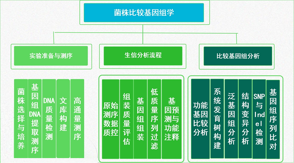 菌株比较基因组分析是通过对不同菌株的全基因组进行测序和比较,揭示菌株之间的遗传差异、进化关系及功能特性关联的一种生物技术手段。微基生物依托先进测序技术与生物信息学分析方法,推出菌株比较基因组检测分析服务,提供样本处理、高通量测序、到深度数据分析的全流程一站式解决方案。