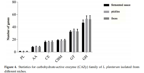 不同来源植物乳杆菌CAZy家族基因数量统计