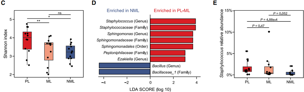 16S rRNA基因测序:明确葡萄球菌为LUAD转移灶特异性富集菌属