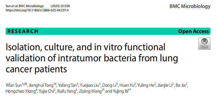 传统肺癌微生物组研究高度依赖16S rDNA测序等非培养技术,难以获得活菌株开展功能验证。本研究整合培养组学 + 16S rDNA 高通量测序 + 体外功能实验,首次从临床肺癌组织中分离可培养菌株,并证实其促肿瘤增殖、促炎的关键作用,为肺癌微生物机制研究与靶向干预提供核心实验依据。